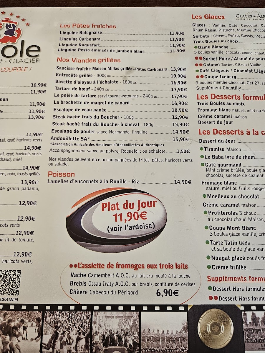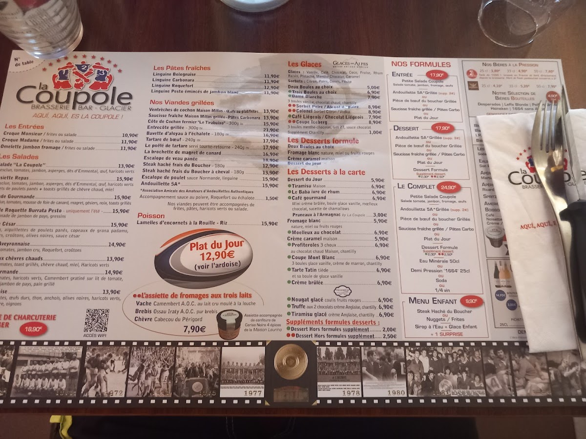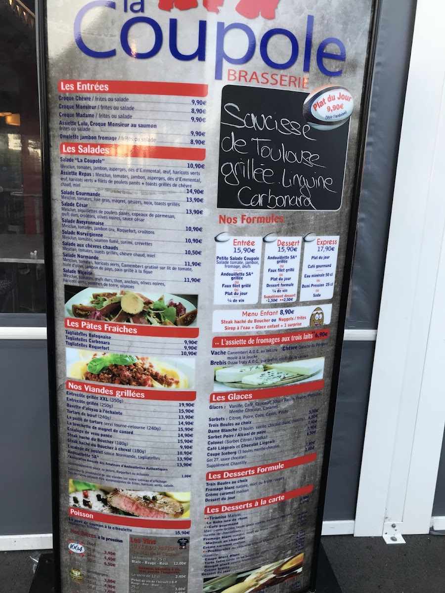 Brasserie la Coupole in Béziers offers a delightful blend of simple yet flavorful French cuisine at accessible prices. The menu features dishes ranging from €11 to €18, with well-balanced options allowing diners to enjoy a complete meal—entrée, main, dessert, and drink—often for around €20-30. Highlights include classic plates made with fresh, quality ingredients that embody the essence of traditional brasserie fare.
